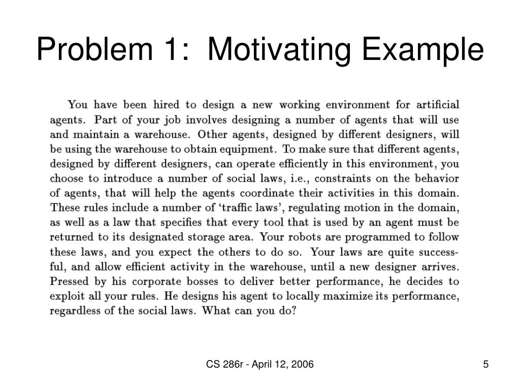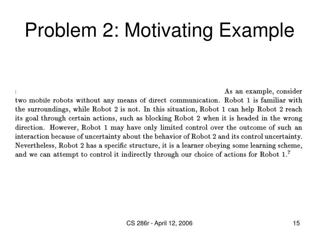 Problem 2: Motivating Example CS 286r - April 12, 2006