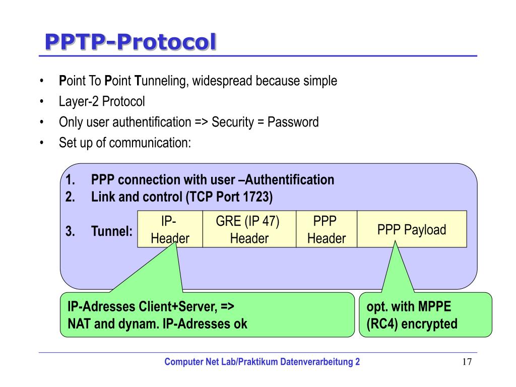 PPTP-Protocol 2 Computer Net Lab/Praktikum Datenverarbeitung 2