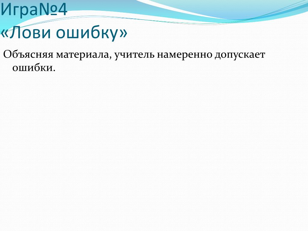 Игра№4«Лови ошибку» Объясняя материала, учитель намеренно допускает ошибки.