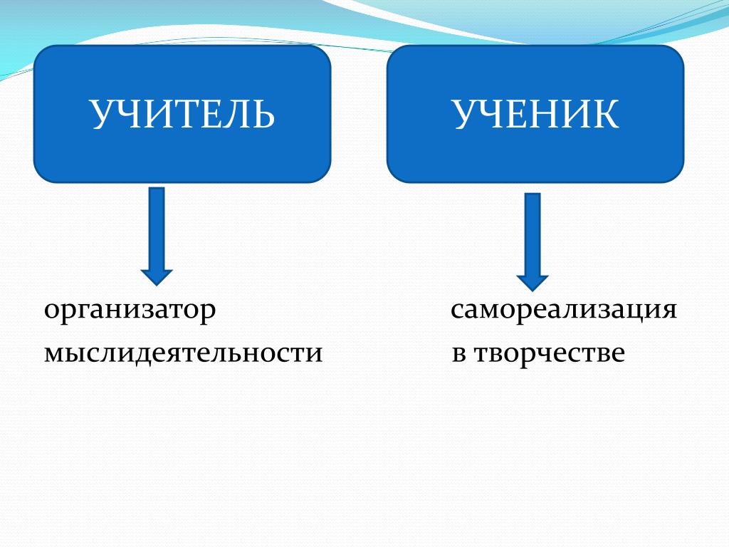 УЧИТЕЛЬ УЧЕНИК организатор самореализация мыслидеятельности в творчестве