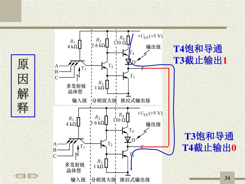 T4饱和导通T3截止输出1 原因解释 T3饱和导通T4截止输出0