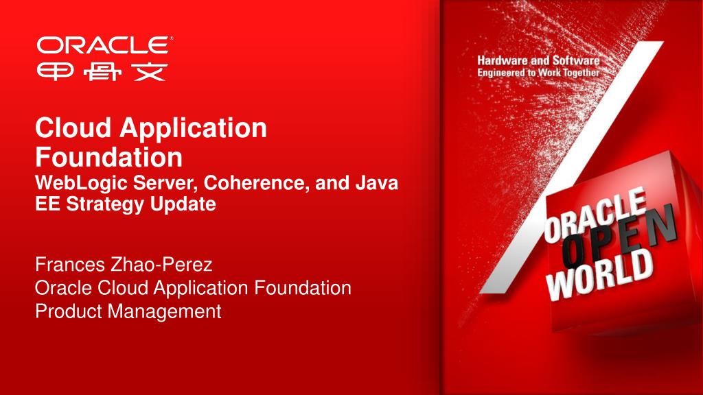 Cloud Application Foundation WebLogic Server, Coherence, and Java EE Strategy Update. Frances Zhao-Perez Oracle Cloud Application Foundation Product Management. Agenda. Cloud Application Foundation strategy update Java EE Launch and main themes