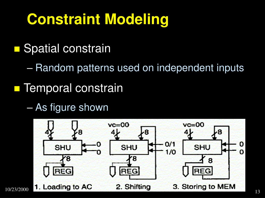 Constraint Modeling • Spatial constrain • Random patterns used on independent inputs • Temporal constrain • As figure shown