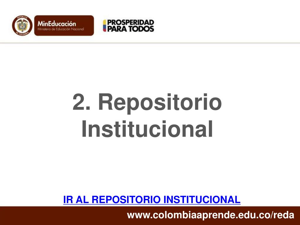 2. Repositorio Institucional IR AL REPOSITORIO INSTITUCIONAL www.colombiaaprende.edu.co/reda