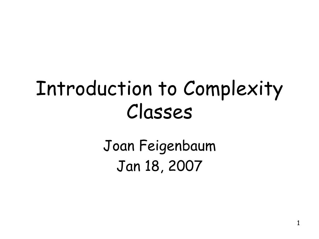 Introduction to Complexity Classes Joan Feigenbaum Jan 18, 2007