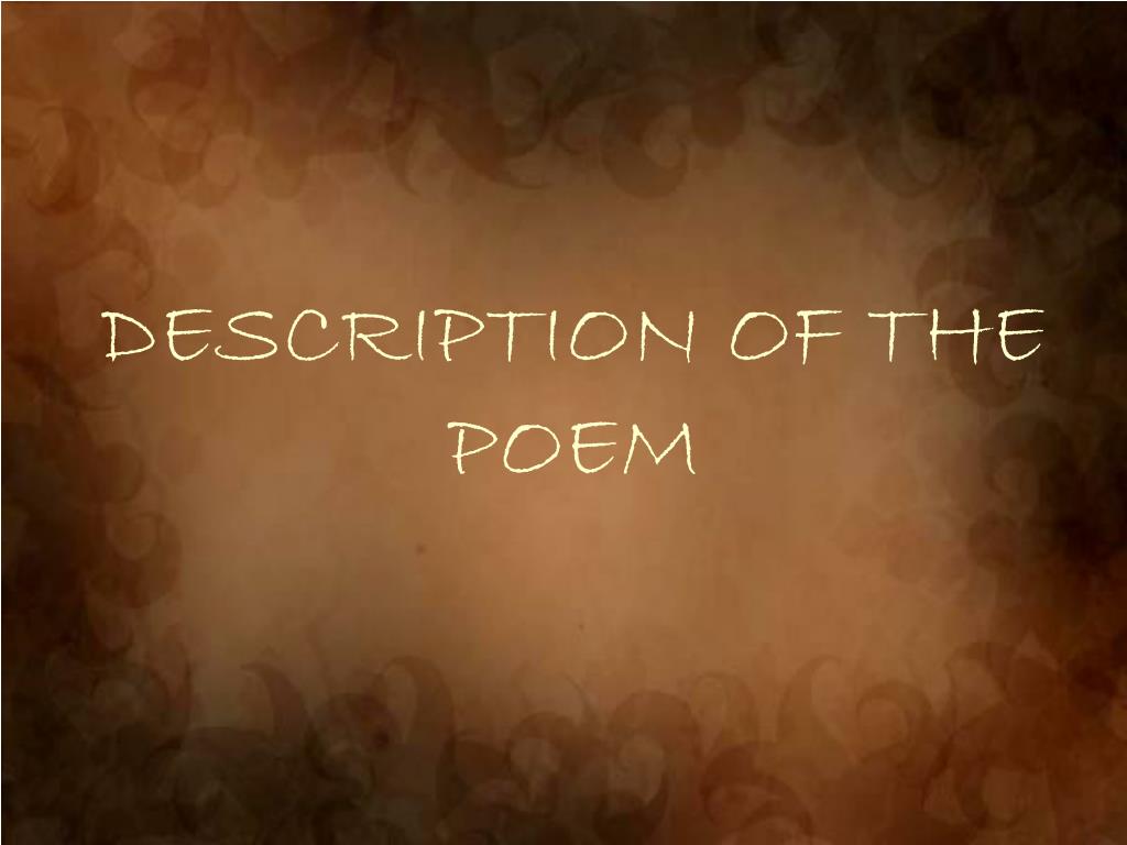 DESCRIPTION OF POEM A Valediction: ForbiddingMourning shining example of the mature, spiritual relationship that Donne hadwith his wife.