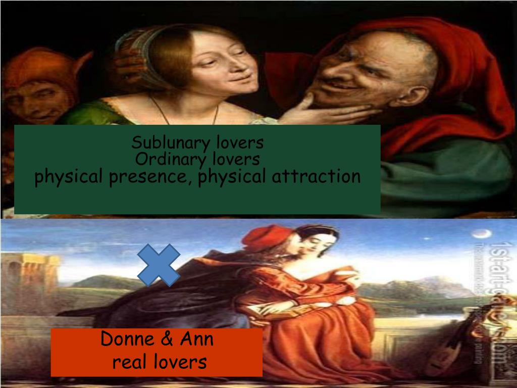 Sublunarylovers • Ordinarylovers • physical presence, physicalattraction Donne & Ann reallovers