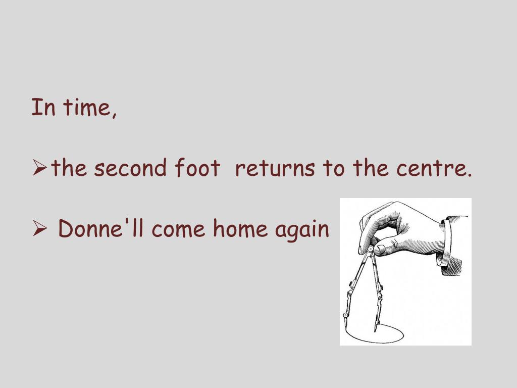 In time, • thesecondfootreturnstothecentre. • Donne'llcomehomeagain