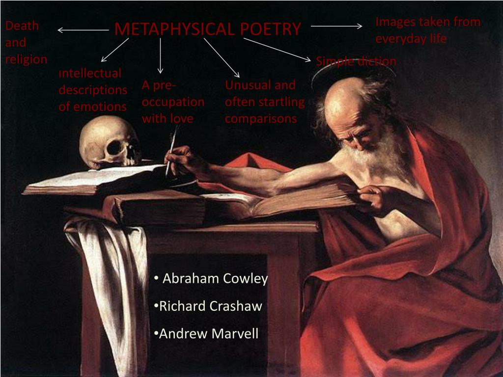 Imagestakenfromeveryday life Death andreligion METAPHYSICAL POETRY Simplediction ıntellectualdescriptions of emotions A pre-occupationwithlove Unusualandoftenstartlingcomparisons • Abraham Cowley • Richard Crashaw • Andrew Marvell