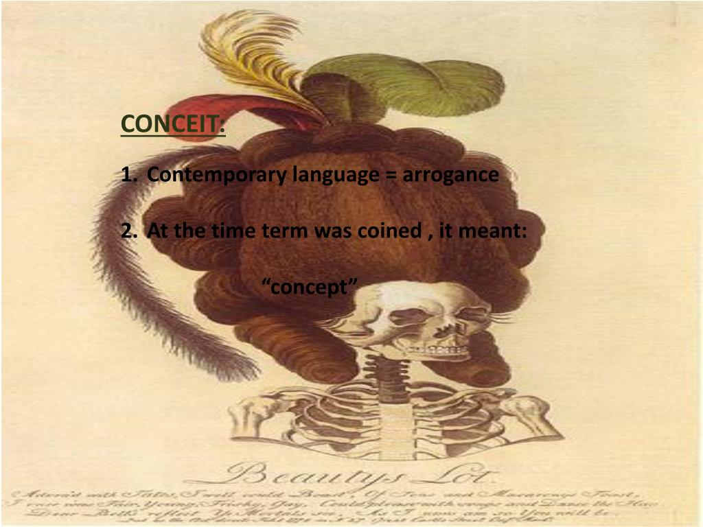 CONCEIT: Contemporarylanguage = arrogance At the time termwascoined , it meant: “concept”