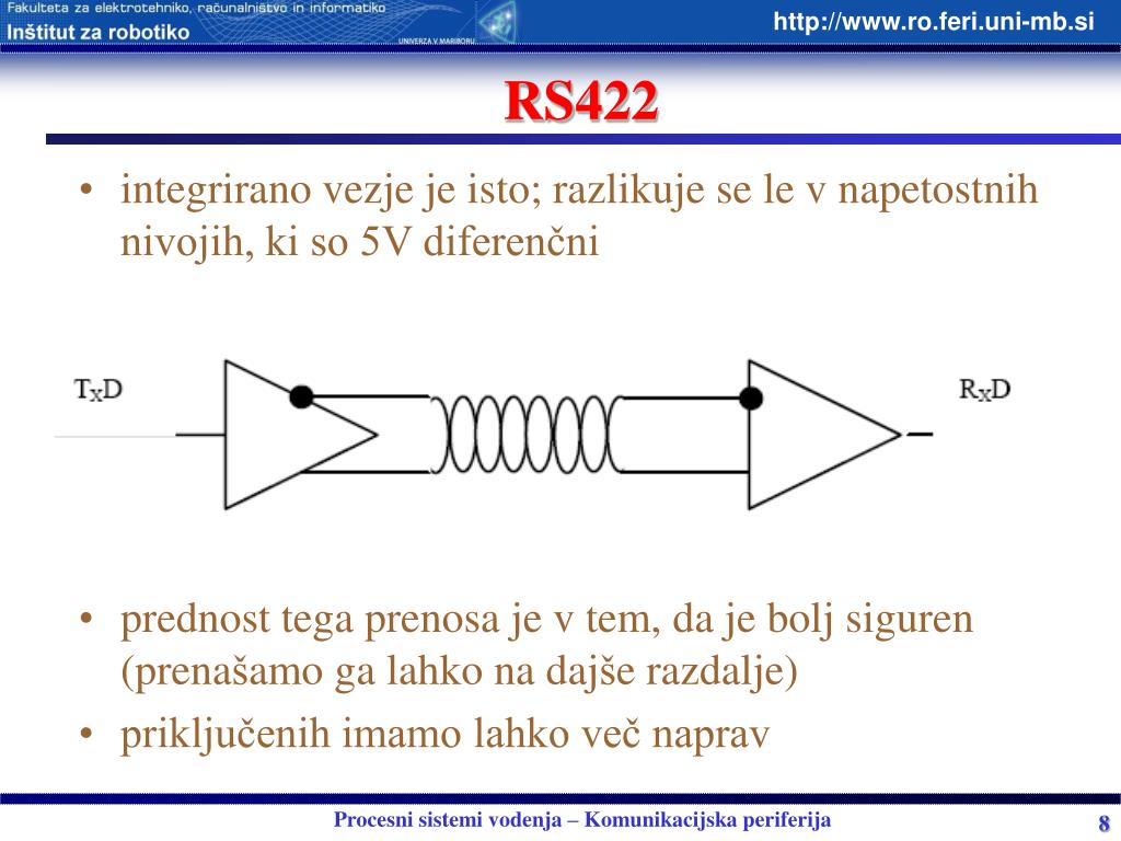 RS422 – vmesnik in signali Procesni sistemi vodenja – Komunikacijska periferija