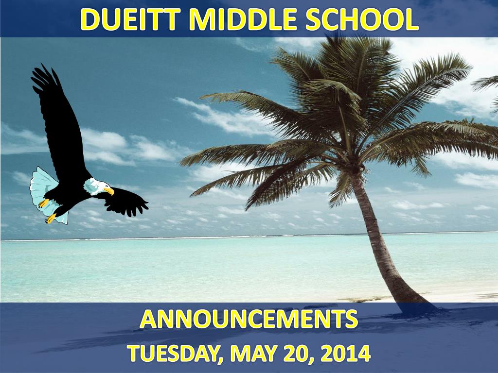 DUEITT MIDDLE SCHOOL ANNOUNCEMENTS TUESDAY, MAY 20, 2014