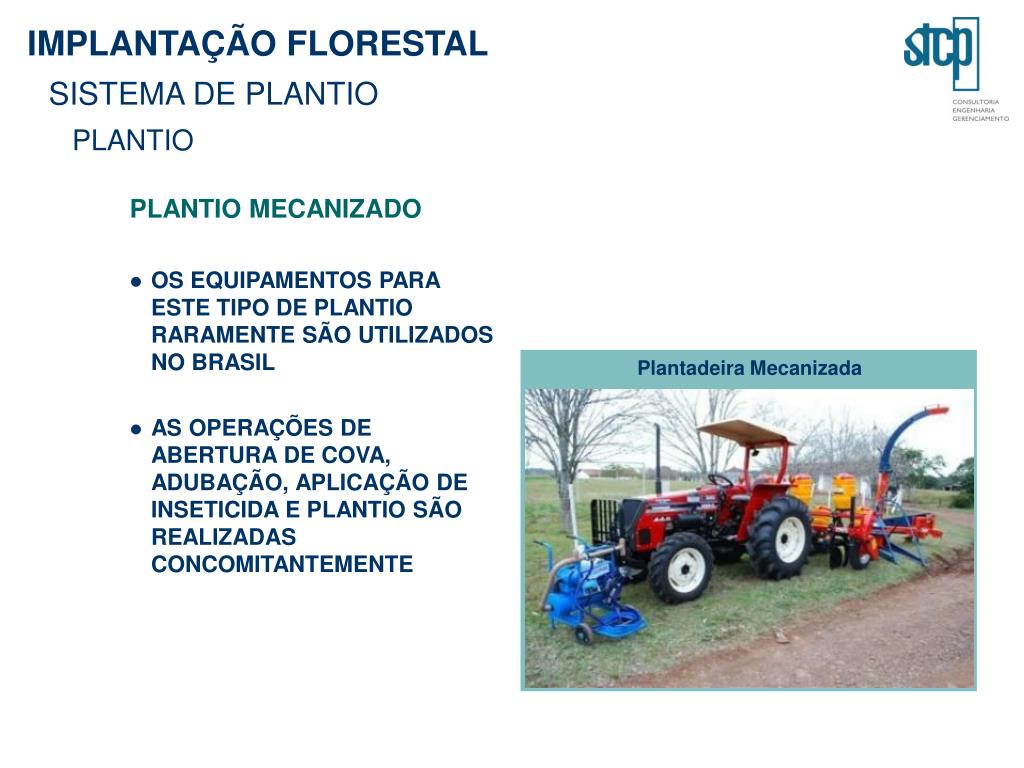 Plantadeira Mecanizada IMPLANTAÇÃO FLORESTAL SISTEMA DE PLANTIO PLANTIO