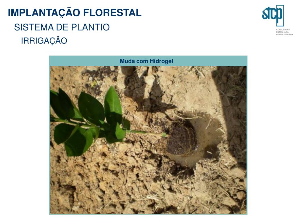 Muda com Hidrogel IMPLANTAÇÃO FLORESTAL SISTEMA DE PLANTIO IRRIGAÇÃO