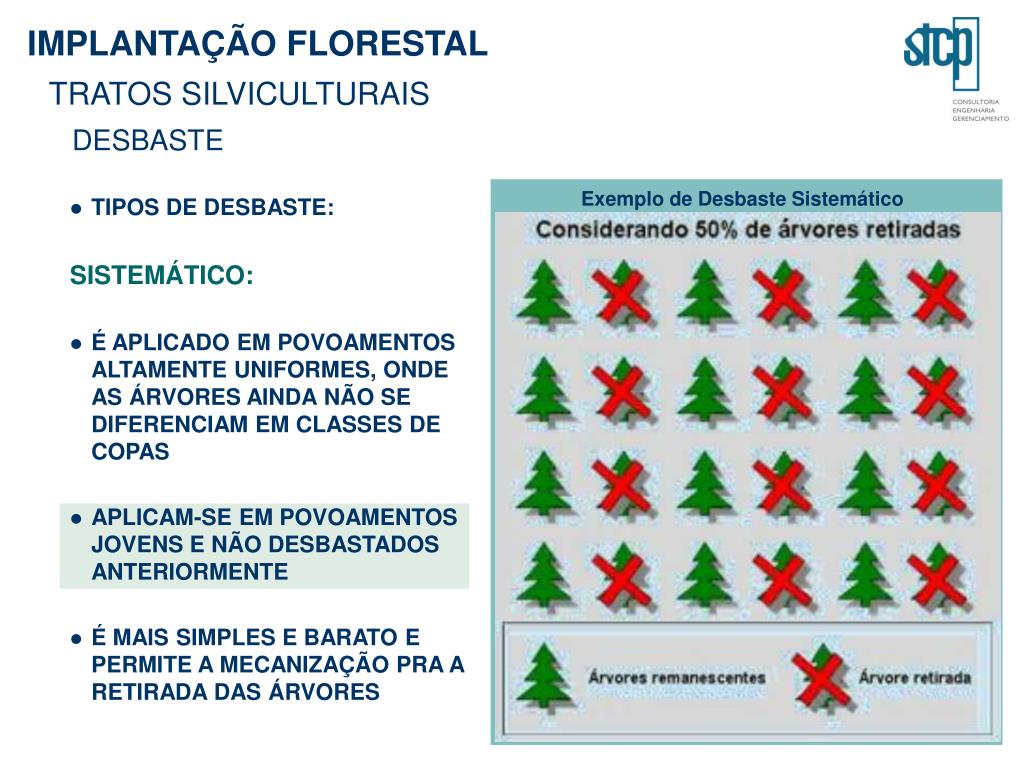 Exemplo de Desbaste Sistemático IMPLANTAÇÃO FLORESTAL TRATOS SILVICULTURAIS DESBASTE