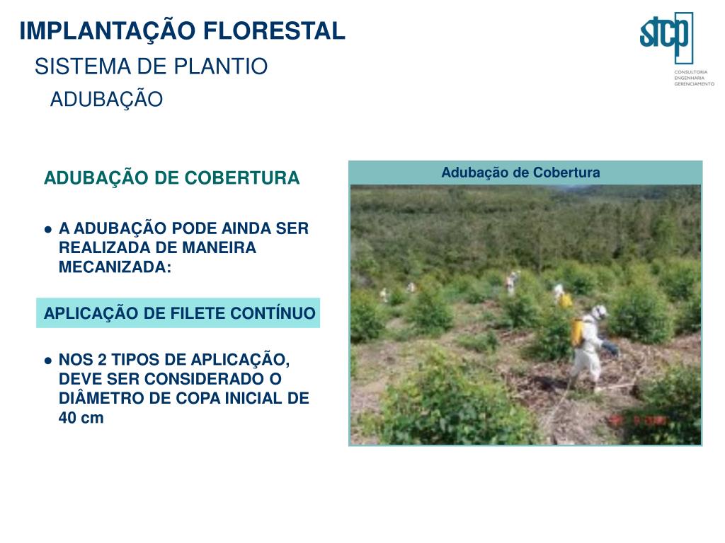 Adubação de Cobertura IMPLANTAÇÃO FLORESTAL SISTEMA DE PLANTIO ADUBAÇÃO
