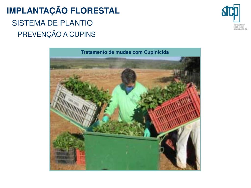 Tratamento de mudas com Cupinicida IMPLANTAÇÃO FLORESTAL SISTEMA DE PLANTIO PREVENÇÃO A CUPINS