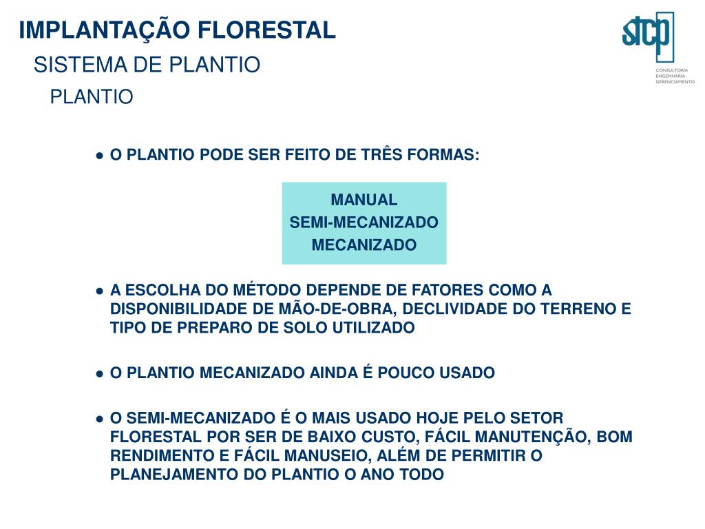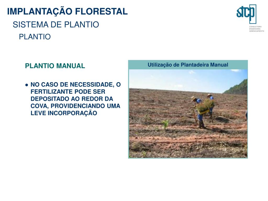 Plantio Semi-Mecanizado IMPLANTAÇÃO FLORESTAL SISTEMA DE PLANTIO PLANTIO