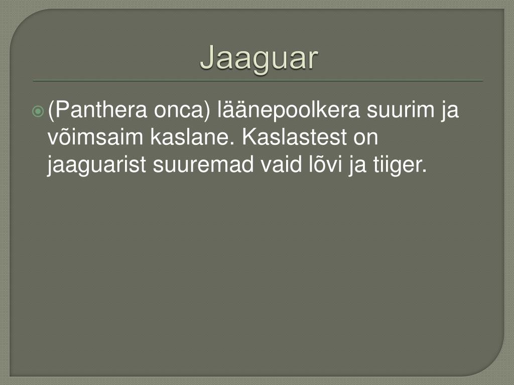Jaaguar (Panthera onca) läänepoolkera suurim ja võimsaim kaslane. Kaslastest on jaaguarist suuremad vaid lõvi ja tiiger.