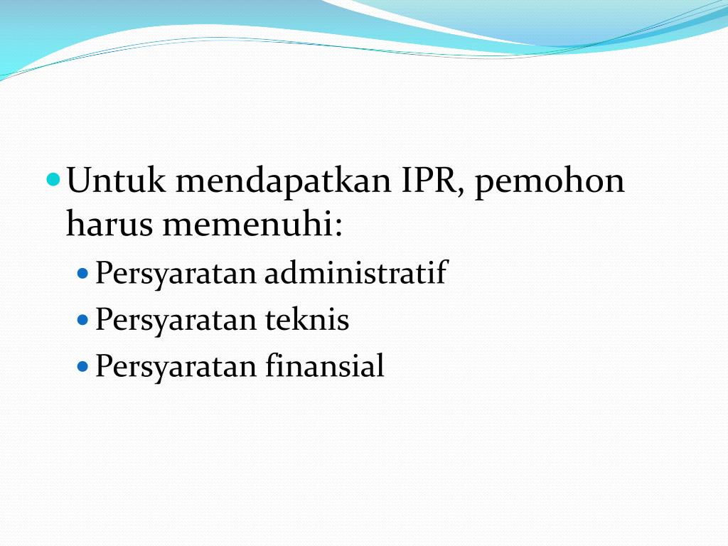 Untuk mendapatkan IPR, pemohon harus memenuhi: • Persyaratan administratif • Persyaratan teknis • Persyaratan finansial