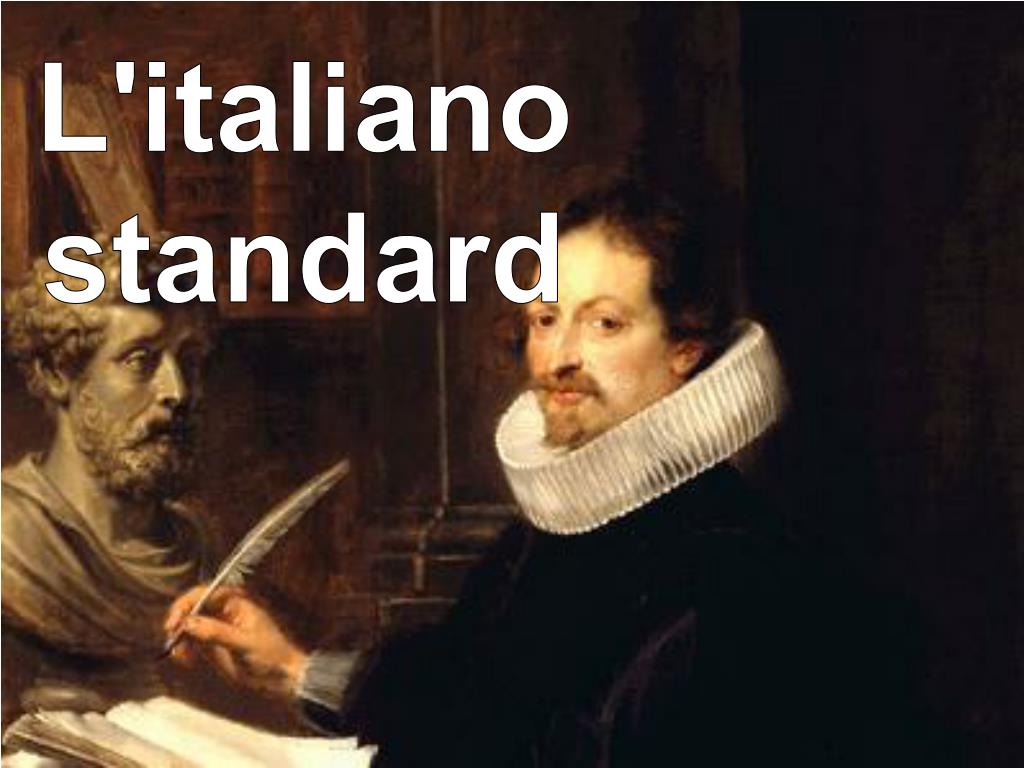 L’italiano standard • Possiamo definire l’italiano standard come la varietà di lingua che – posseduta soprattutto dalle persone colte – viene assunta, anche implicitamente, come modello da tutti i parlanti e gli scriventi, è prescritta come esemplare nell’insegnamento ed è descritta e disciplinata da dizionari e grammatiche. • Per il fatto di avere un notevole prestigio, l’italiano standard è altresì tradizionalmente riservato agli usi scritti più “nobili” e formali, come quello intellettuale, scientifico, letterario e burocratico.