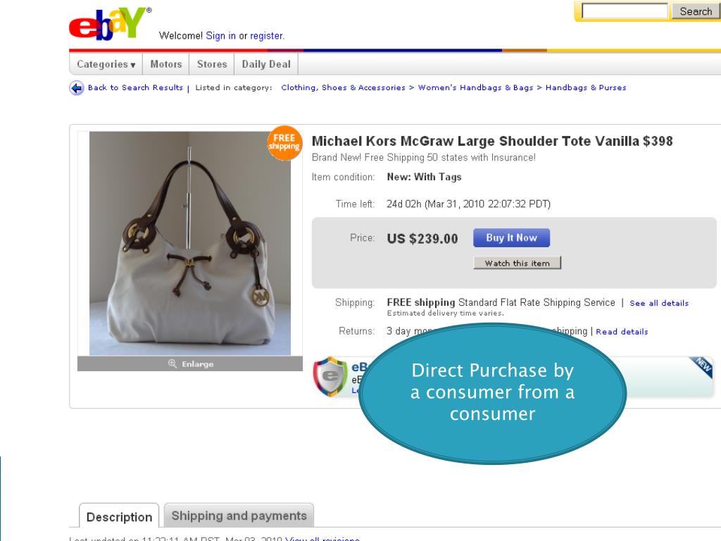 Direct Purchase by a consumer from a consumer Via Auction b/w Consumers/customers