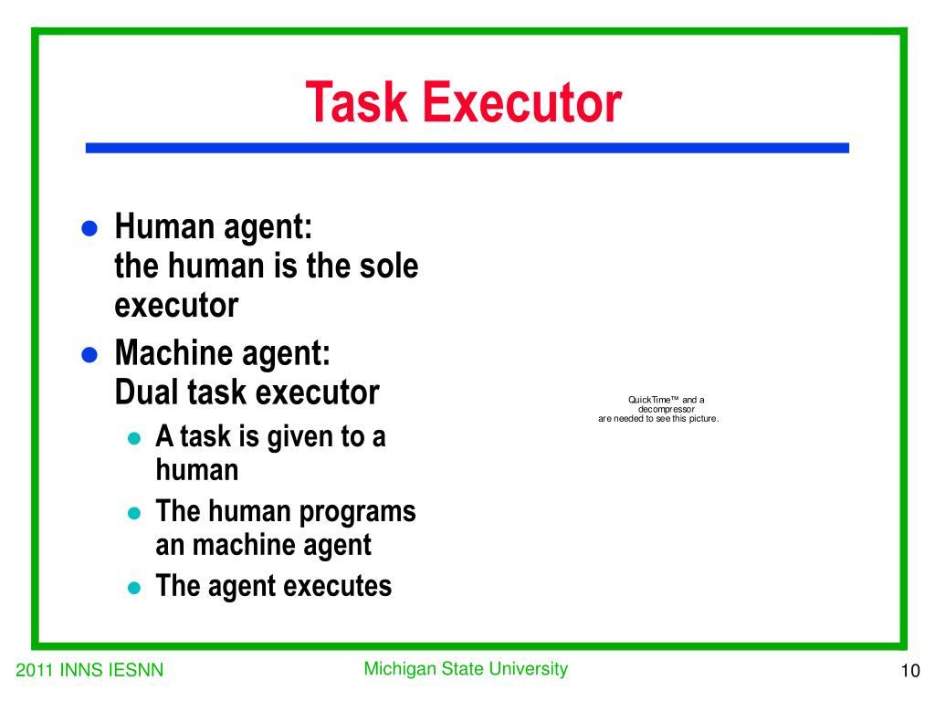 Task Executor • Human agent:the human is the sole executor • Machine agent:Dual task executor • A task is given to a human • The human programs an machine agent • The agent executes