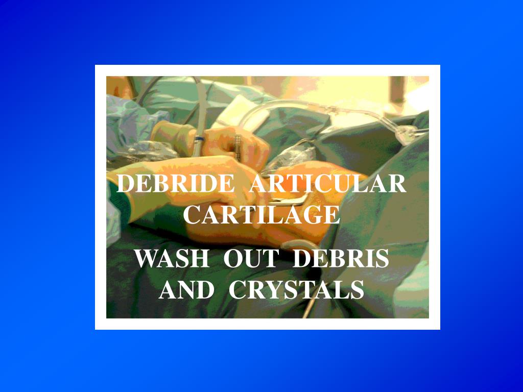 DEBRIDE ARTICULAR CARTILAGE WASH OUT DEBRIS AND CRYSTALS