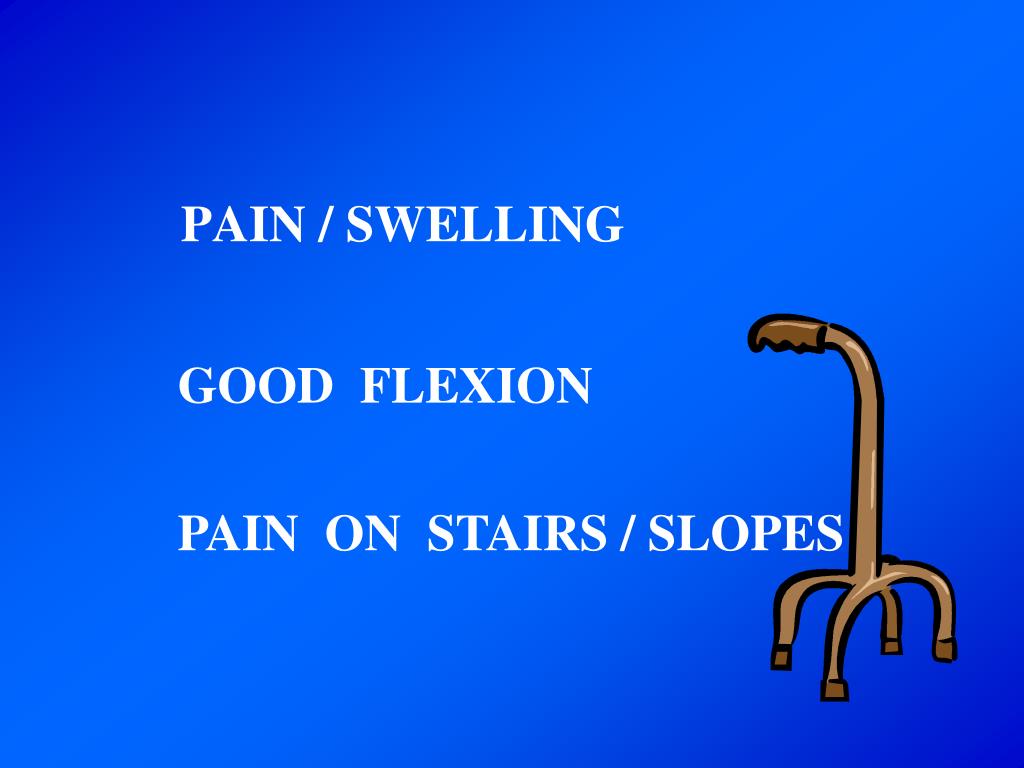 PAIN / SWELLING GOOD FLEXION PAIN ON STAIRS / SLOPES