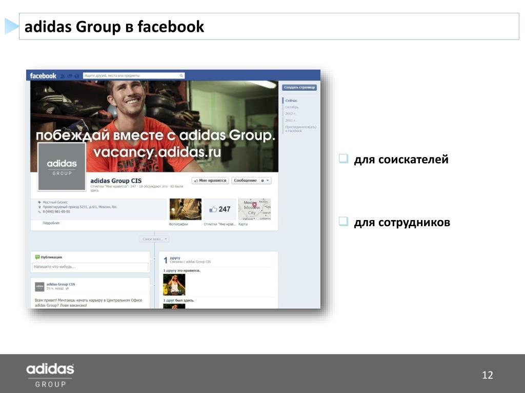 adidas Group в facebook • для соискателей • для сотрудников