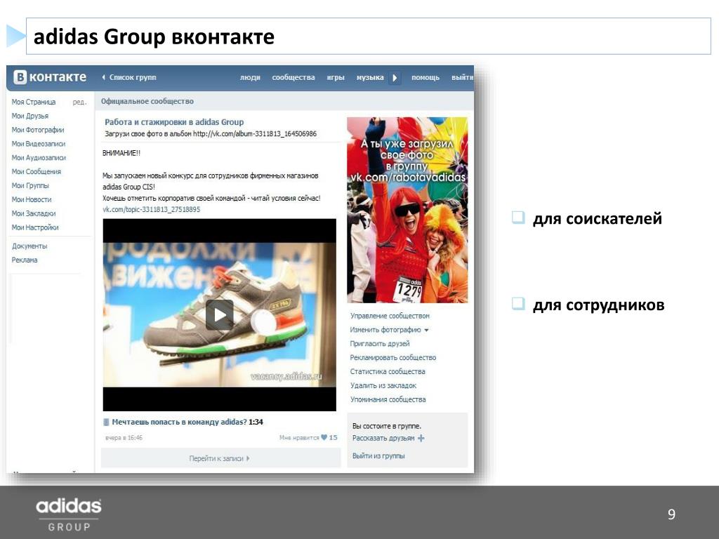 adidas Group вконтакте • для соискателей • для сотрудников