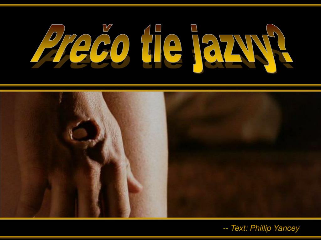 Prečo tie jazvy?. ♫ Zapnite si reproduktory !. SNÍMKY POSUNIETE KLIKNUTÍM. -- Text : Phillip Yancey. Vždy ma fascinoval jeden detail vo veľkonočnom príbehu: Prečo si Ježiš po ukrižovaní nechal jazvy ?