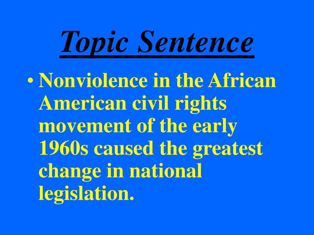 Topic Sentence • Nonviolence in the African American civil rights movement of the early 1960s caused the greatest change in national legislation.