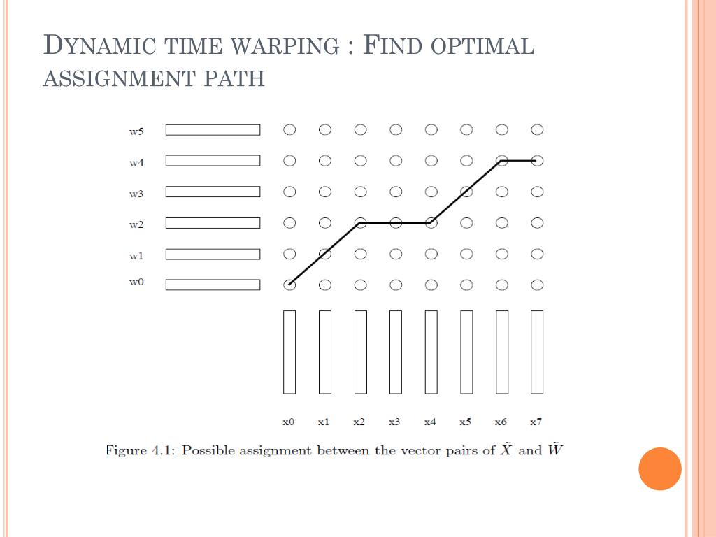 RECOGNIZER • One word spoken contains dozens of feature vectors. (preprocessing every 10 ms of signal) • Compute a ”distance” between this unknown sequence of vectors (unknown word) and known sequence of vectors (prototypes of words to recognize) • PROBLEM !! Unequal length of vector sequence