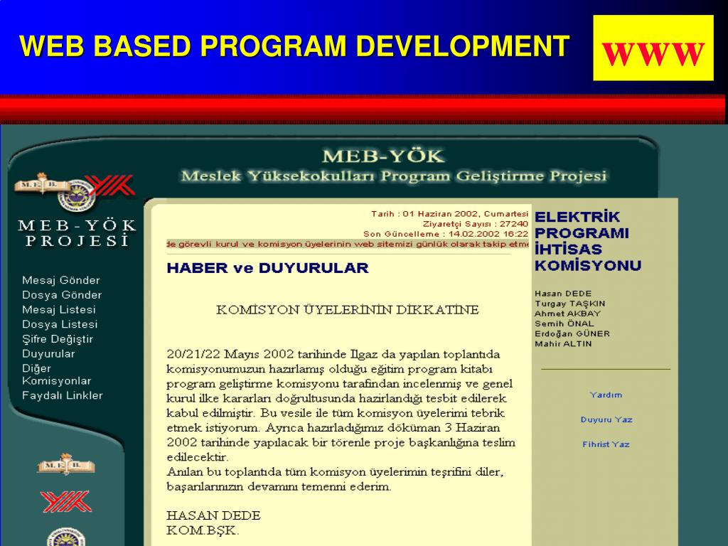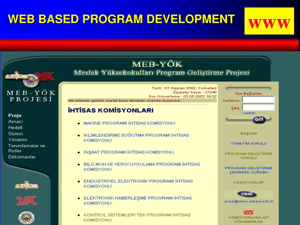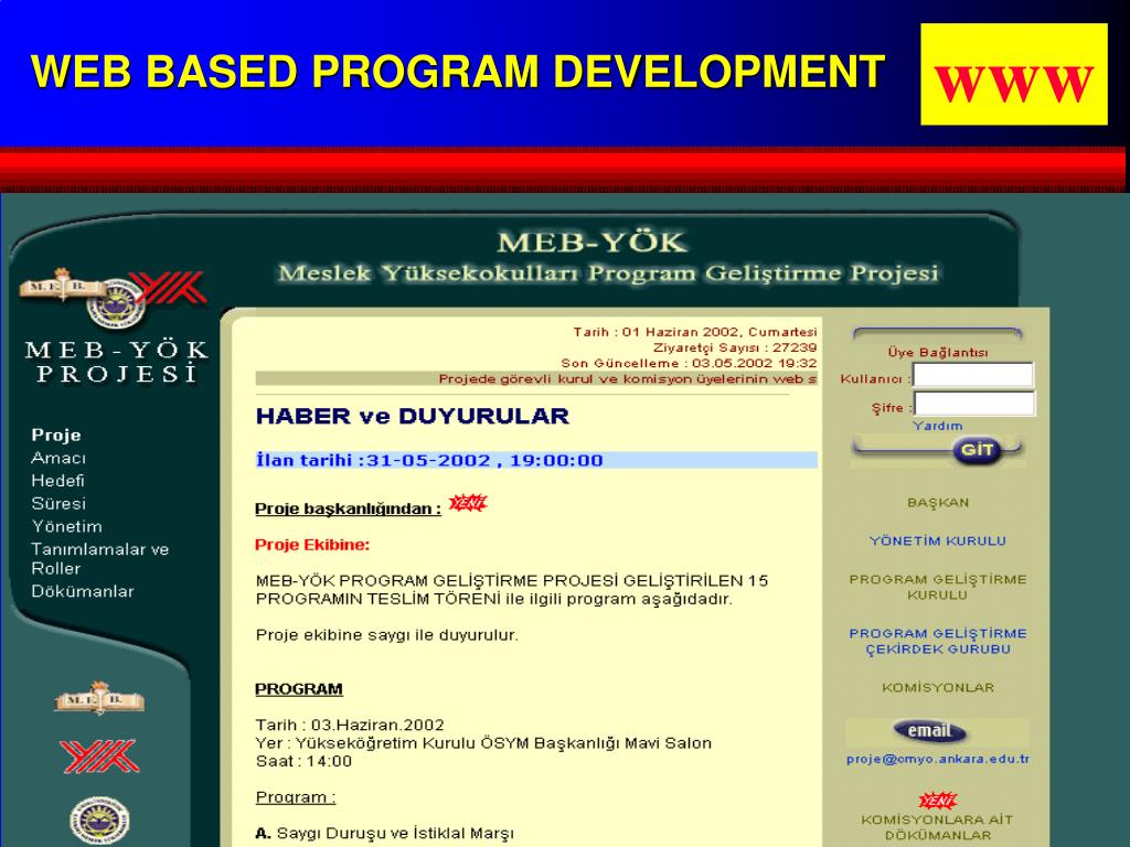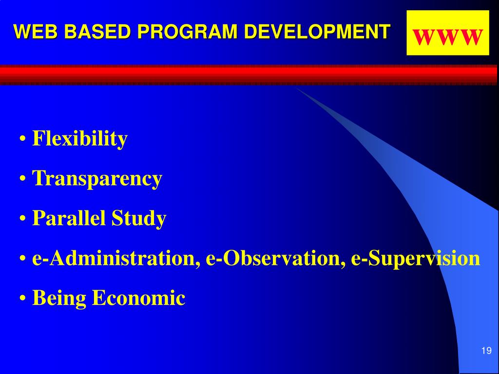 www WEB BASED PROGRAM DEVELOPMENT • Flexibility • Transparency • Parallel Study • e-Administration, e-Observation, e-Supervision • Being Economic