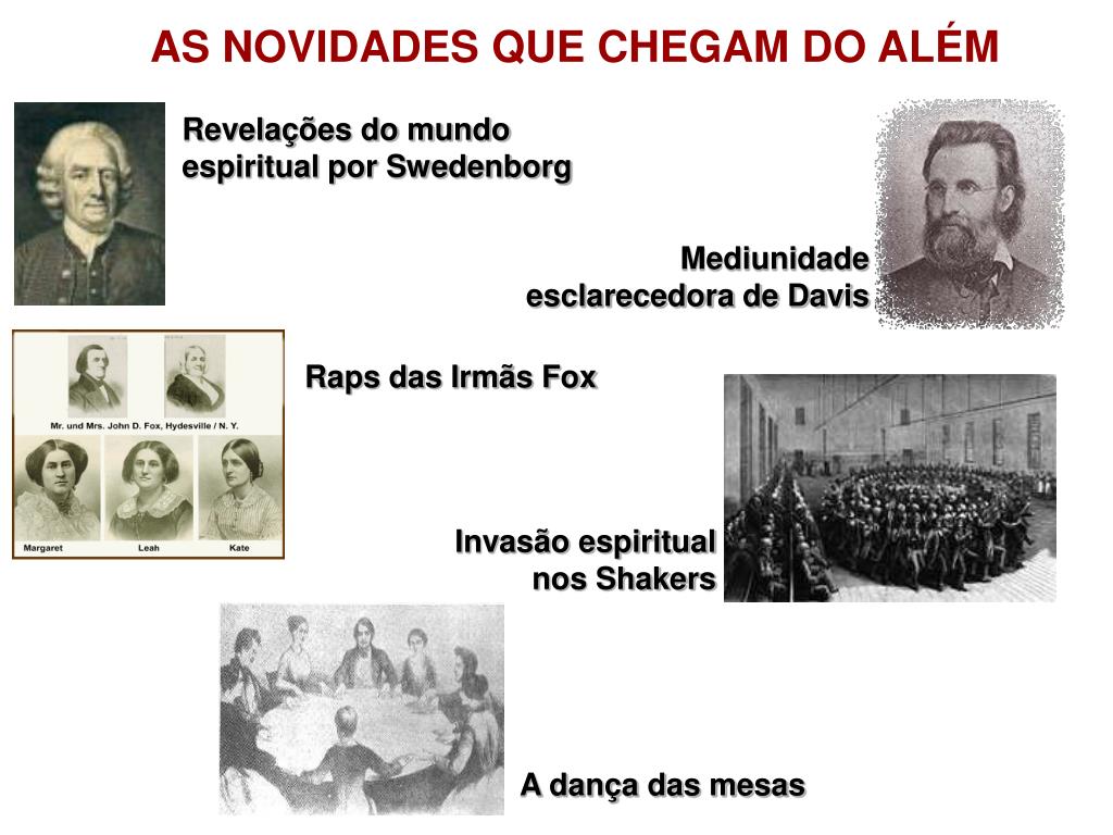 AS NOVIDADES QUE CHEGAM DO ALÉM Revelações do mundo espiritual por Swedenborg Mediunidade esclarecedora de Davis Raps das Irmãs Fox Invasão espiritual nos Shakers A dança das mesas