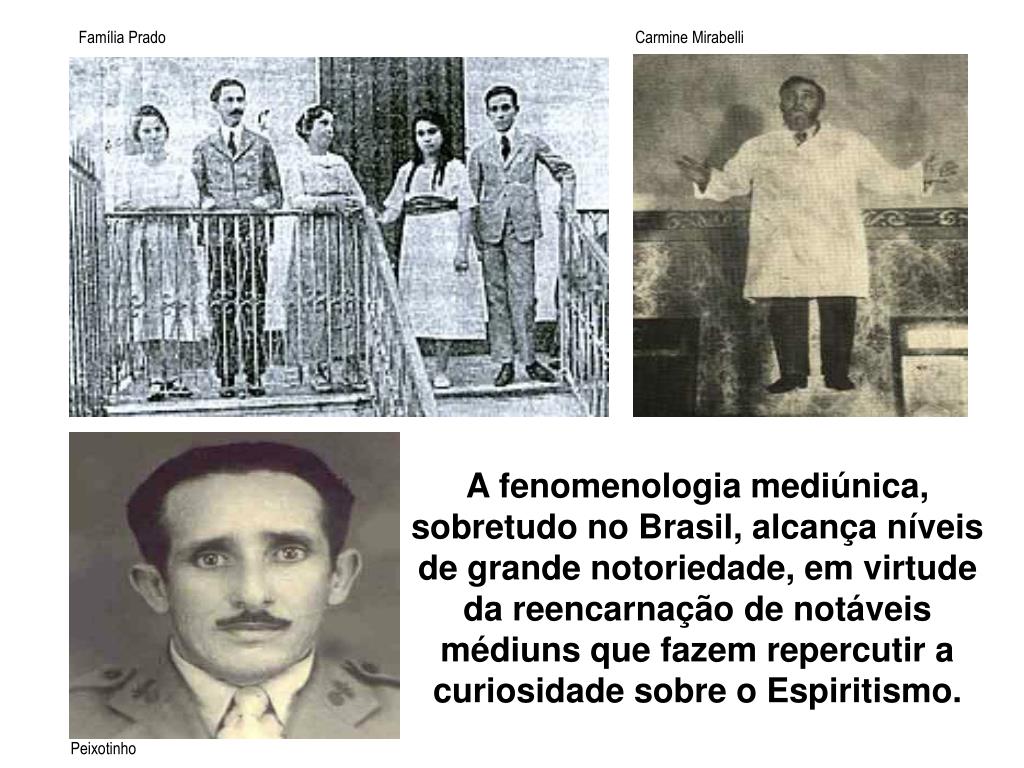 Família Prado Carmine Mirabelli A fenomenologia mediúnica, sobretudo no Brasil, alcança níveis de grande notoriedade, em virtude da reencarnação de notáveis médiuns que fazem repercutir a curiosidade sobre o Espiritismo. Peixotinho