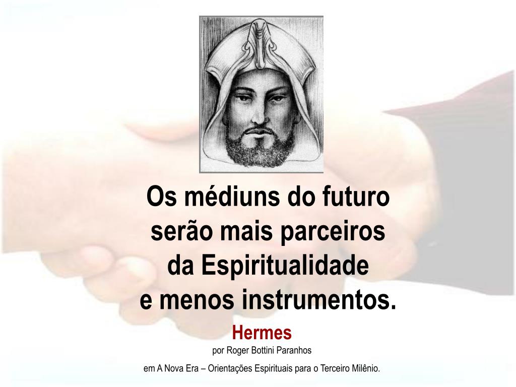 Os médiuns do futuro serão mais parceiros da Espiritualidade e menos instrumentos. Hermes por Roger Bottini Paranhos em A Nova Era – Orientações Espirituais para o Terceiro Milênio.