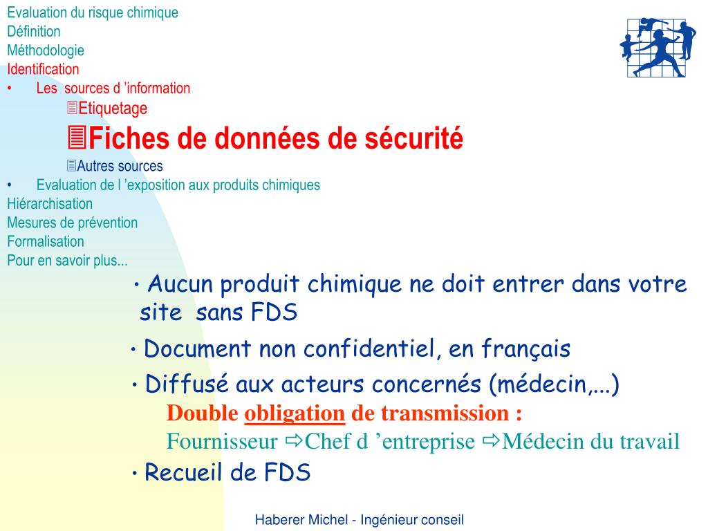 Evaluation du risque chimique • Définition • Méthodologie • Identification • Les sources d ’information • Etiquetage • Fiches de données de sécurité • Autres sources • Evaluation de l ’exposition aux produits chimiques • Hiérarchisation • Mesures de prévention • Formalisation • Pour en savoir plus...