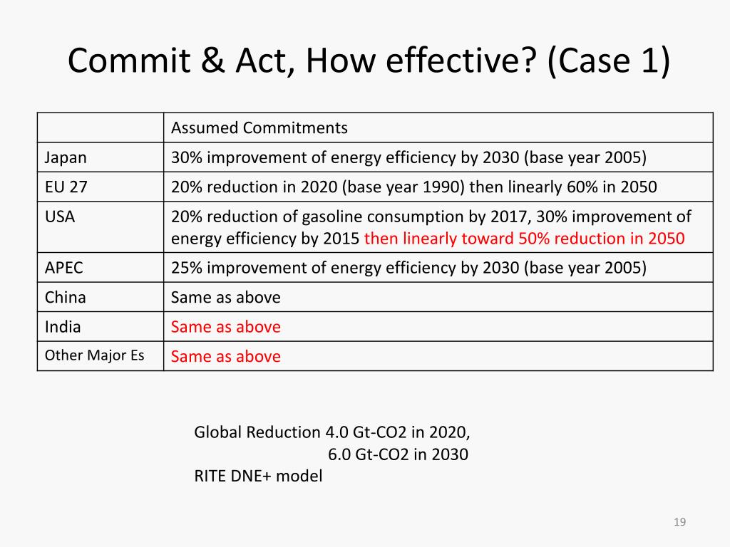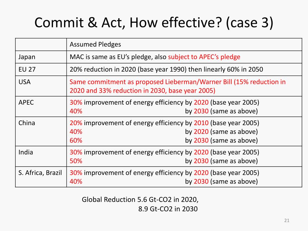 Commit & Act, How effective? (case 3) Global Reduction 5.6 Gt-CO2 in 2020, 8.9 Gt-CO2 in 2030