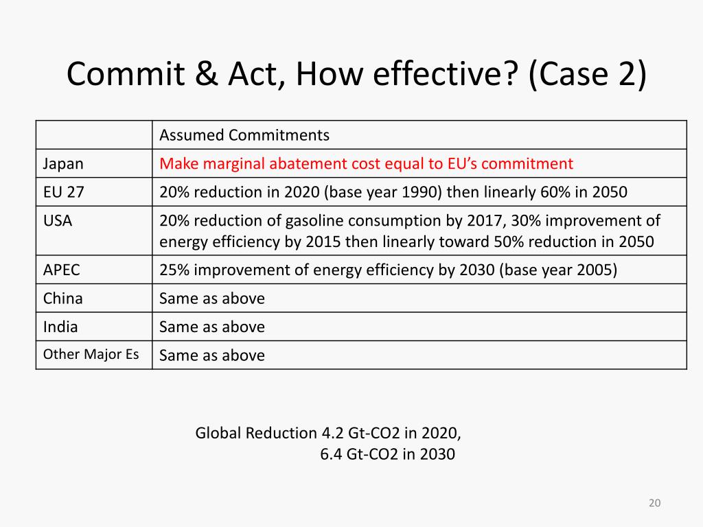 Commit & Act, How effective? (Case 2) Global Reduction 4.2 Gt-CO2 in 2020, 6.4 Gt-CO2 in 2030