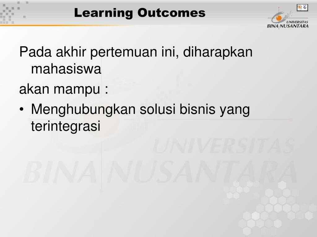 Learning Outcomes Pada akhir pertemuan ini, diharapkan mahasiswa akan mampu : • Menghubungkan solusi bisnis yang terintegrasi