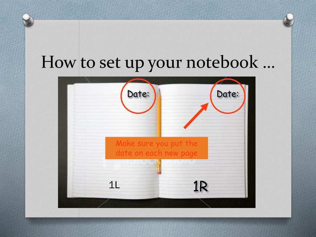 How to set up your notebook … 1L Date: Date: Make sure you put the date on each new page 1R