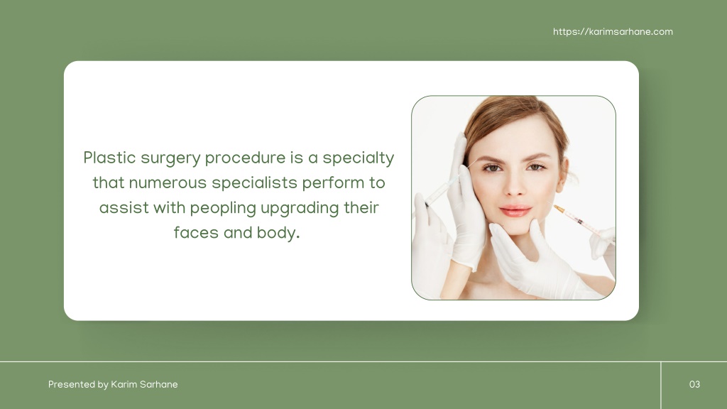 https://karimsarhane.com Plastic surgery procedure is a specialty that numerous specialists perform to assist with peopling upgrading their faces and body. Presented by Karim Sarhane 03