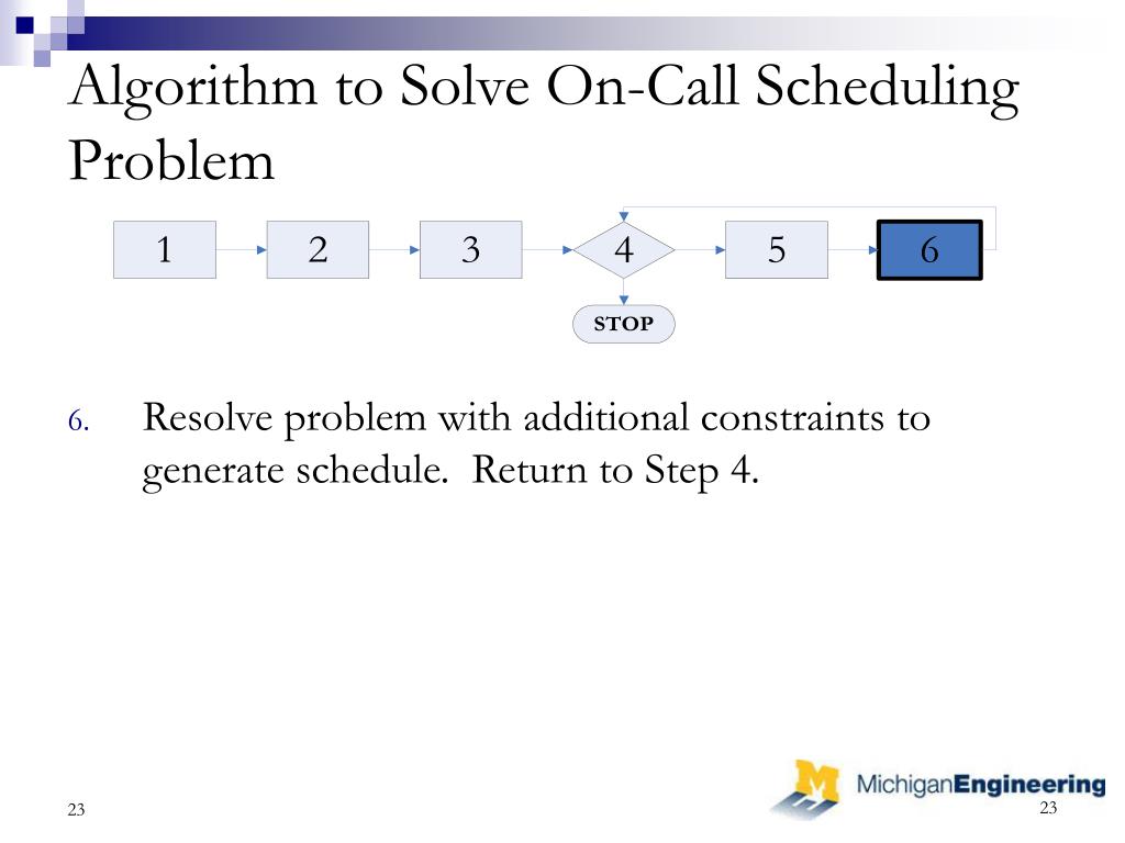 Algorithm to Solve On-Call Scheduling Problem • Resolve problem with additional constraints to generate schedule. Return to Step 4.