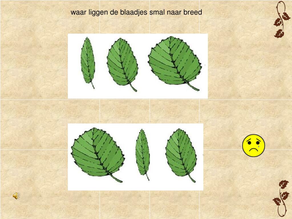 Digibordles seriëren herfst over: groot/klein hoog/laag dik/dun licht/donker breed en smal klik op een ster makkelijk moeilijk Gemaakt door Margriet van Diepen