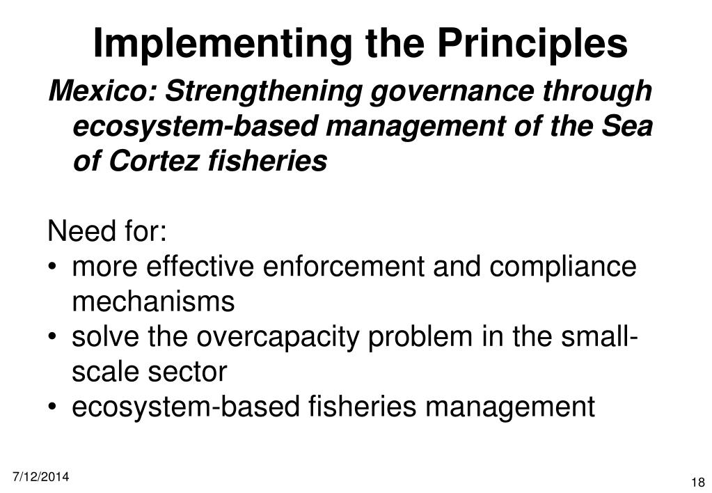 Implementing the Principles Two case studies of governance reform in small-scale fisheries: • Investment in local management in Mexico • Investment in policy reform in the Philippines 7/12/2014 11