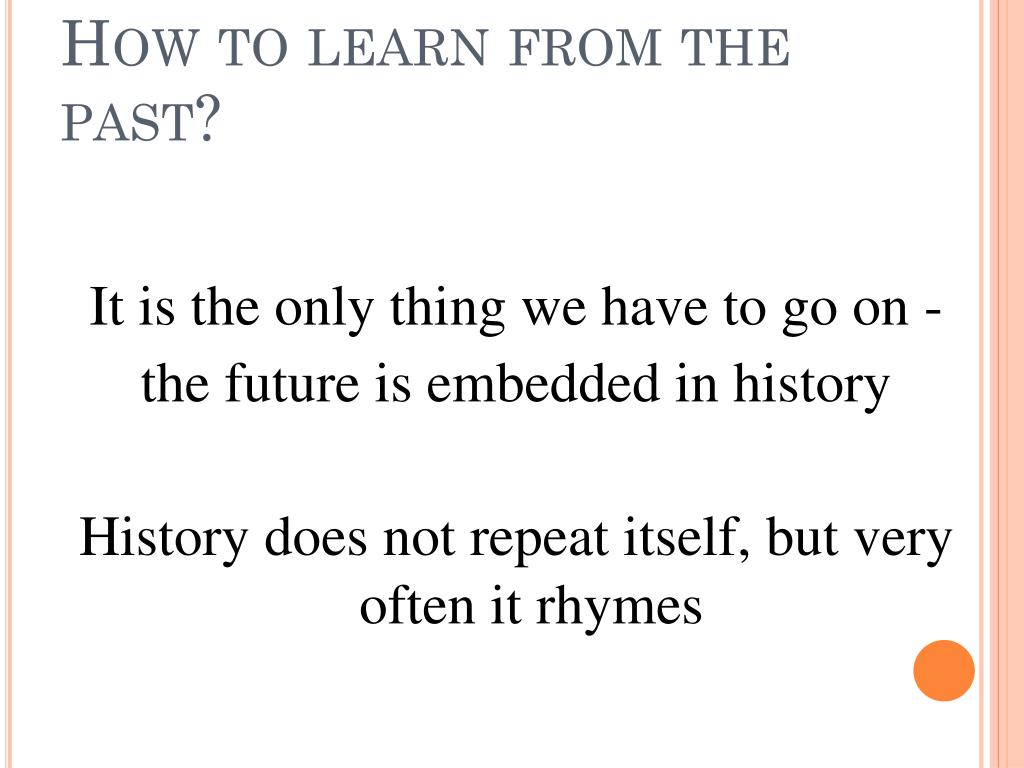 How to learn from the past? It is the only thing we have to go on - the future is embedded in history History does not repeat itself, but very often it rhymes