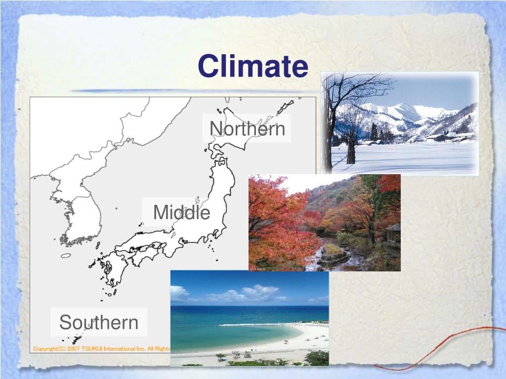 Geography China ● Sapporo - Boston Korea Osaka Tokyo - Chapel Hill ● ● From CH, NC - 14 hoursby air Time Zone - 14 hours ahead Pacific Ocean Okinawa - Miami ●