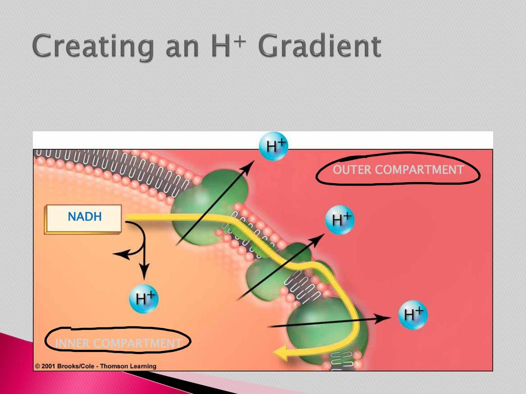 Creating an H+ Gradient OUTER COMPARTMENT NADH INNER COMPARTMENT
